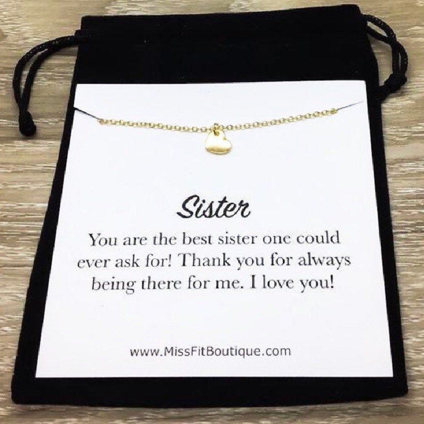 Sister Quote Card, Heart Necklace, Gold, Silver