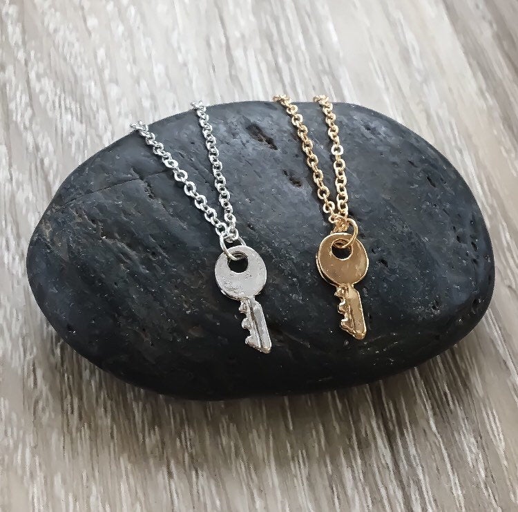 Tiny Key Necklace, Minimalist Jewelry, Skeleton Key Pendant, Friendship Necklace, BFF Gift, Simple Reminders Jewelry, Best Friend Necklace