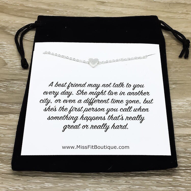 Collier petit cœur, cadeau pour amies à distance, carte avec citation, bijou symbolique, cadeau pour meilleure amie