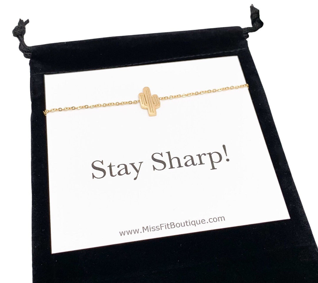 Carte « Stay Sharp », Bracelet cactus, Bracelet chaîne succulente, Bracelet délicat, Bracelet d'amitié, Bijou symbolique, Bracelet minimaliste