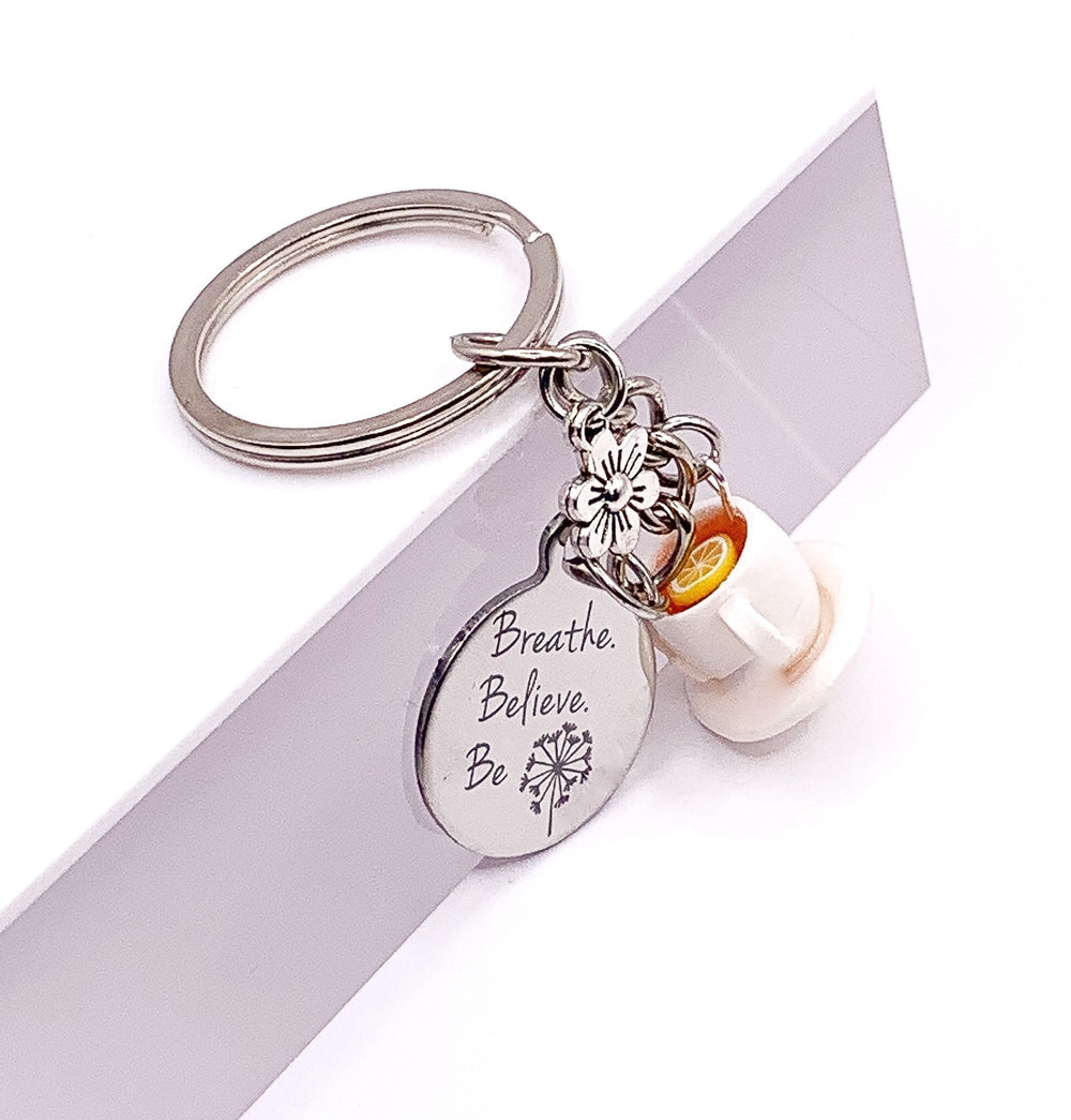 Porte-clés tasse de thé, citation « Respire, crois, sois », cadeau pour les amateurs de thé, joli cadeau pour elle, accro au thé, porte-clés unique, cadeau gourmand, joli cadeau pour maman