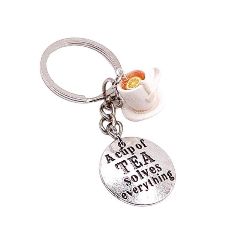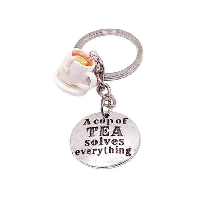 Porte-clés tasse de thé, cadeau pour les amatrices de thé, joli cadeau pour elle, accro au thé, porte-clés unique, la tasse de thé résout tout, cadeau pour les gourmandes, joli cadeau pour maman
