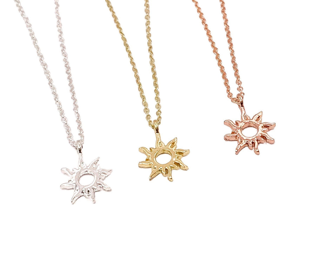 Collier Soleil, Pendentif Soleil, Collier Délicat, Collier Soleil Céleste Minimaliste, Bijou d'Été, Collier Soleil en Or Rose