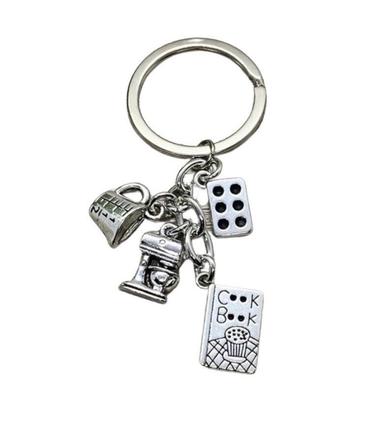 Porte-clés pâtisserie, Cadeaux pour pâtissiers, Porte-clés cuisine, Breloque petite tasse à mesurer, Breloques pour cuisiniers, Porte-clés unique, Cadeau pour elle