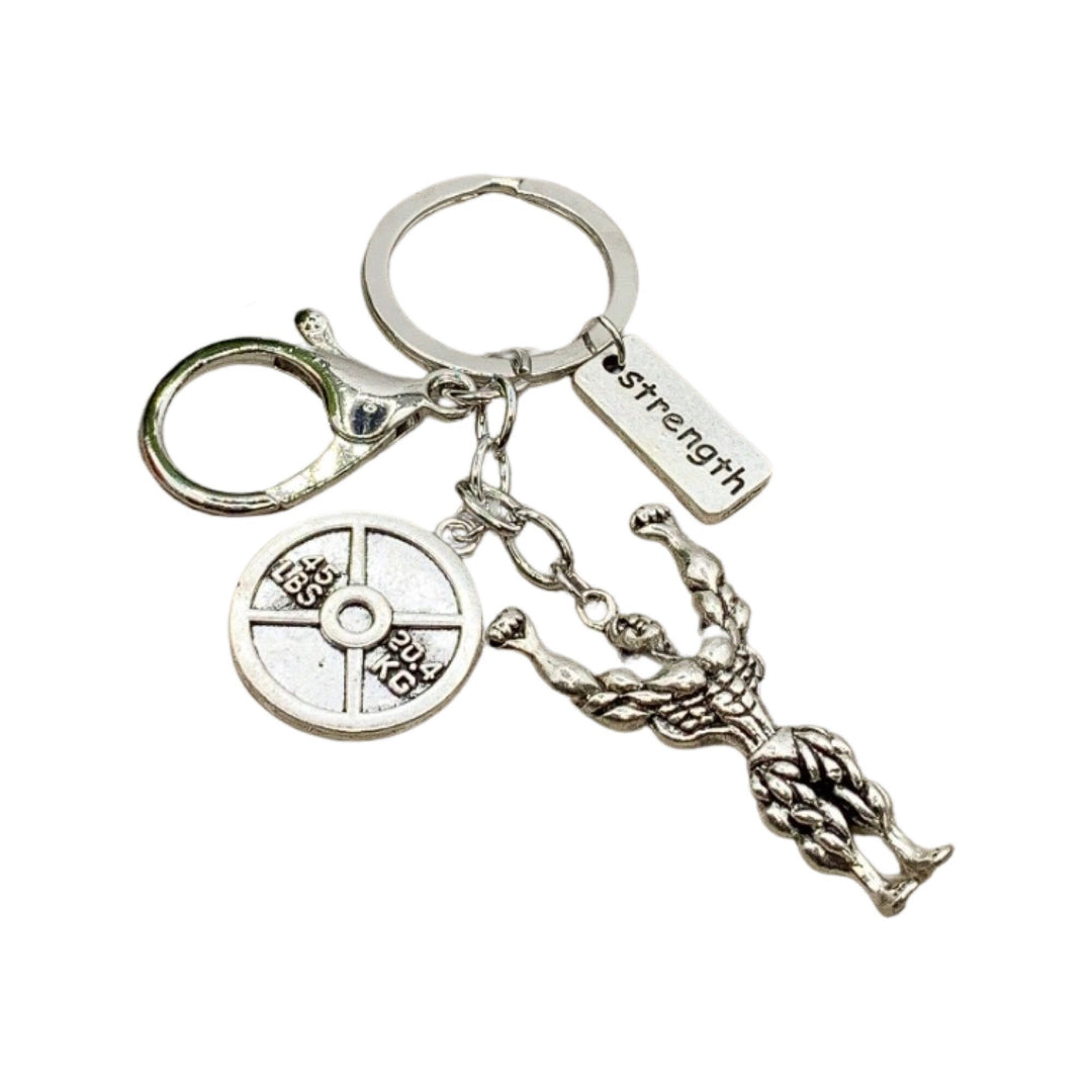 Porte-clés bodybuilder, pendentif disque de musculation de 20 kg, porte-clés haltérophilie, cadeau pour compétition de fitness, porte-clés force, cadeau pour passionné de musculation (homme)