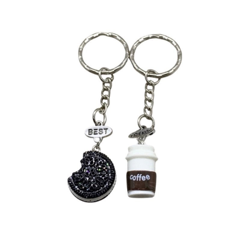 Porte-clés assortis pour meilleures amies, Coffret de 2 porte-clés « Amitié café », Cadeaux pour meilleures amies, Porte-clés « Bestie », Cadeau porte-clés BFF, Anniversaire