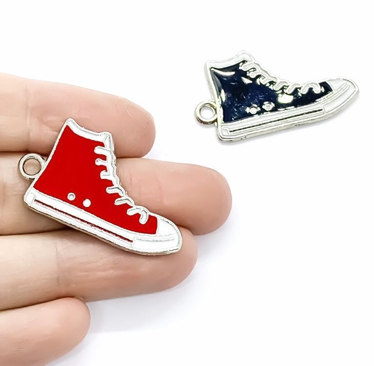 Breloque chaussure de basket argentée, breloque sportive, breloque basket rouge, breloque joueur de basket, breloque personnalisée, breloque sport, cadeau pour entraîneur d'équipe