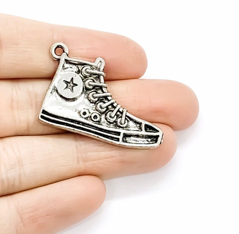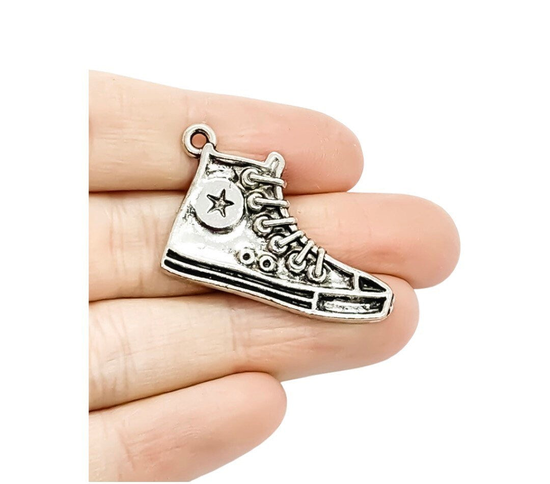 1 Breloque Chaussure de Basketball Argentée, Breloque Sportive, Breloque Basket, Breloque Joueur de Basketball, Breloque Personnalisée, Breloque Sportive, Cadeau pour Coach d'Équipe, À Faire Soi-même