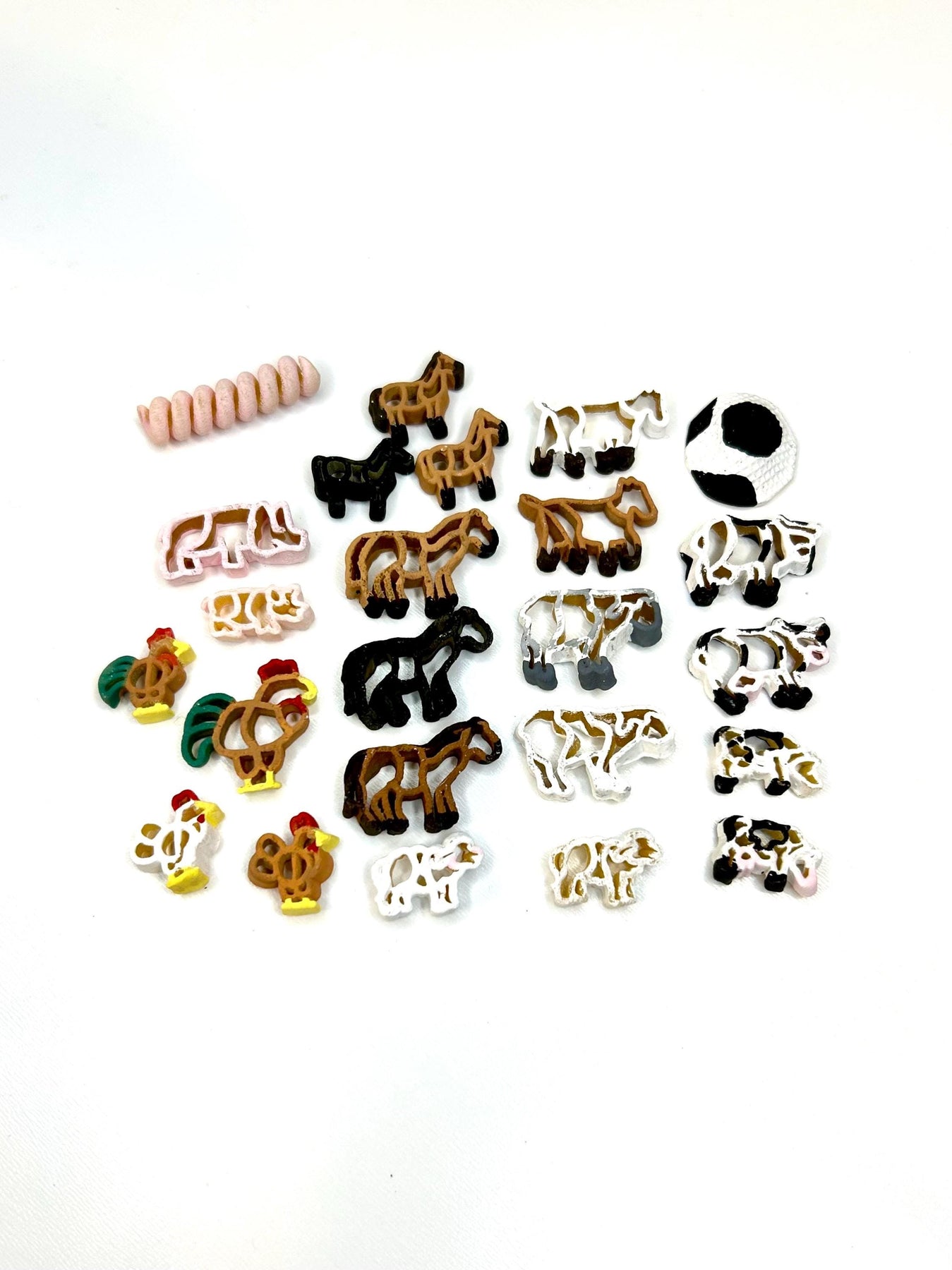 • Painted Pasta Animals: Hand-painted, non-toxic pasta shaped and designed to look like: