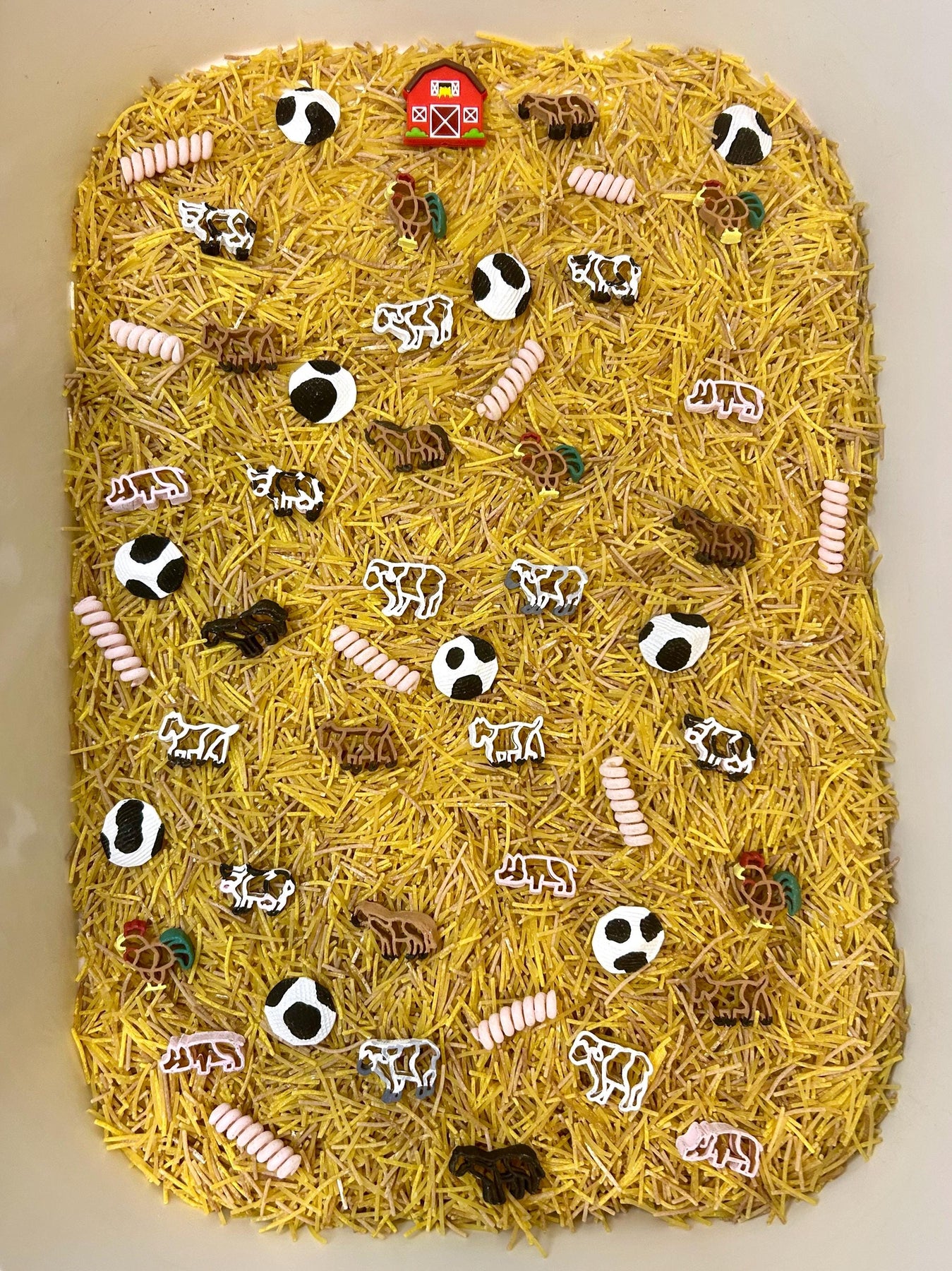 Farm Animals Sensory Filler | Barnyard Sensory Bin Mix | Hay Pasta Sensory Play | Painted Farm Animals | Fall Montessori Small World Play