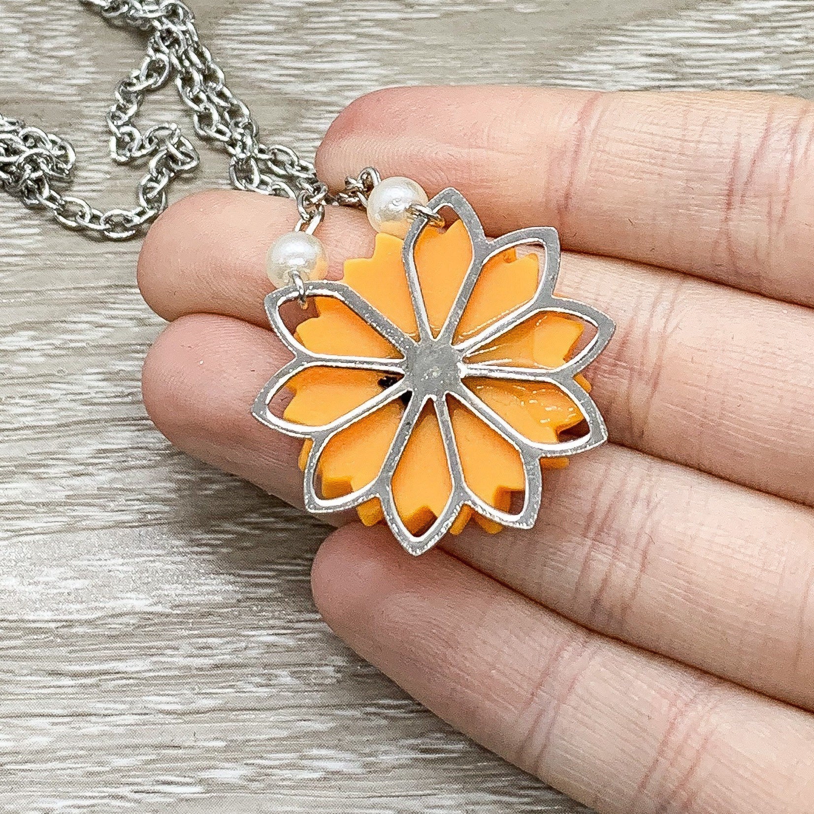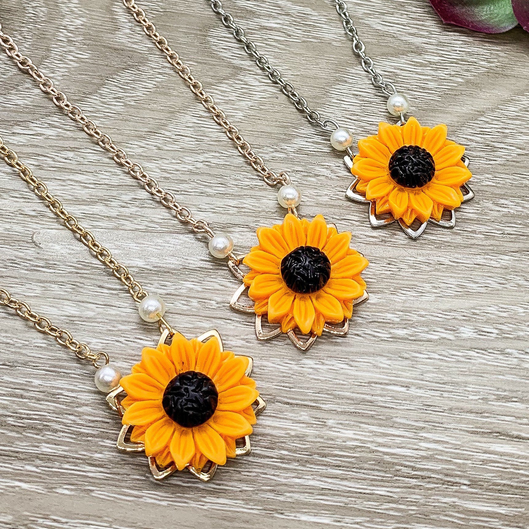 Collier tournesol géant, bijou fleur jaune, collier d'amitié, bijou floral, cadeau nature, cadeau pour meilleure amie, collier symbolique