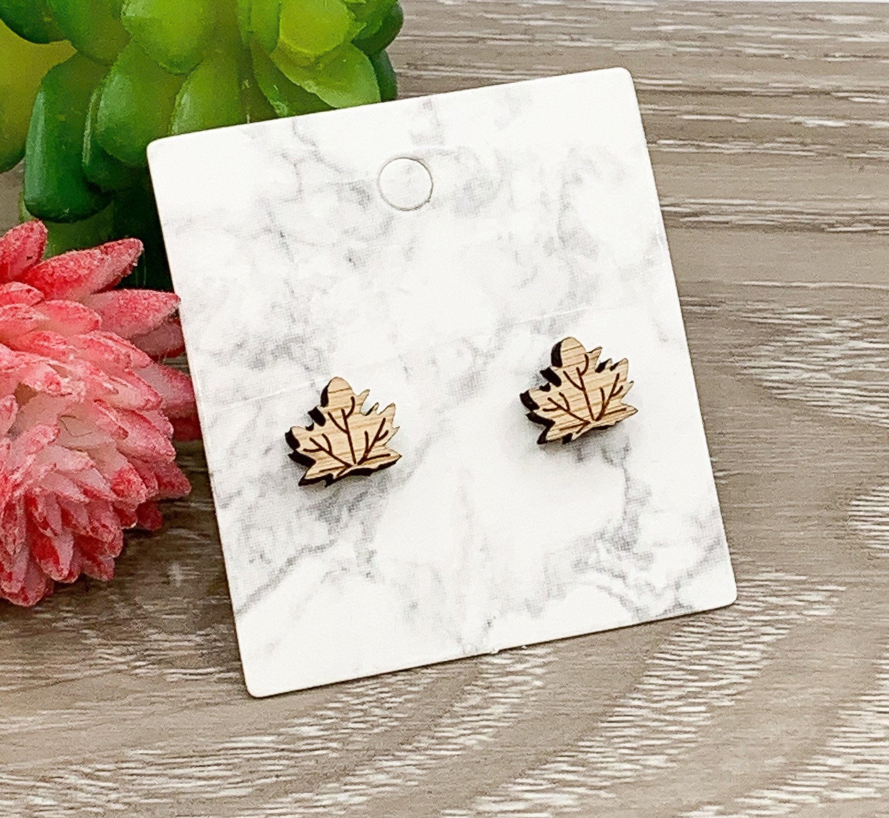 Boucles d'oreilles puces feuille d'érable, petites boucles d'oreilles feuilles, bijoux canadiens, jolies boucles d'oreilles en bois, bijoux uniques, bijoux d'automne, cadeau pour elle