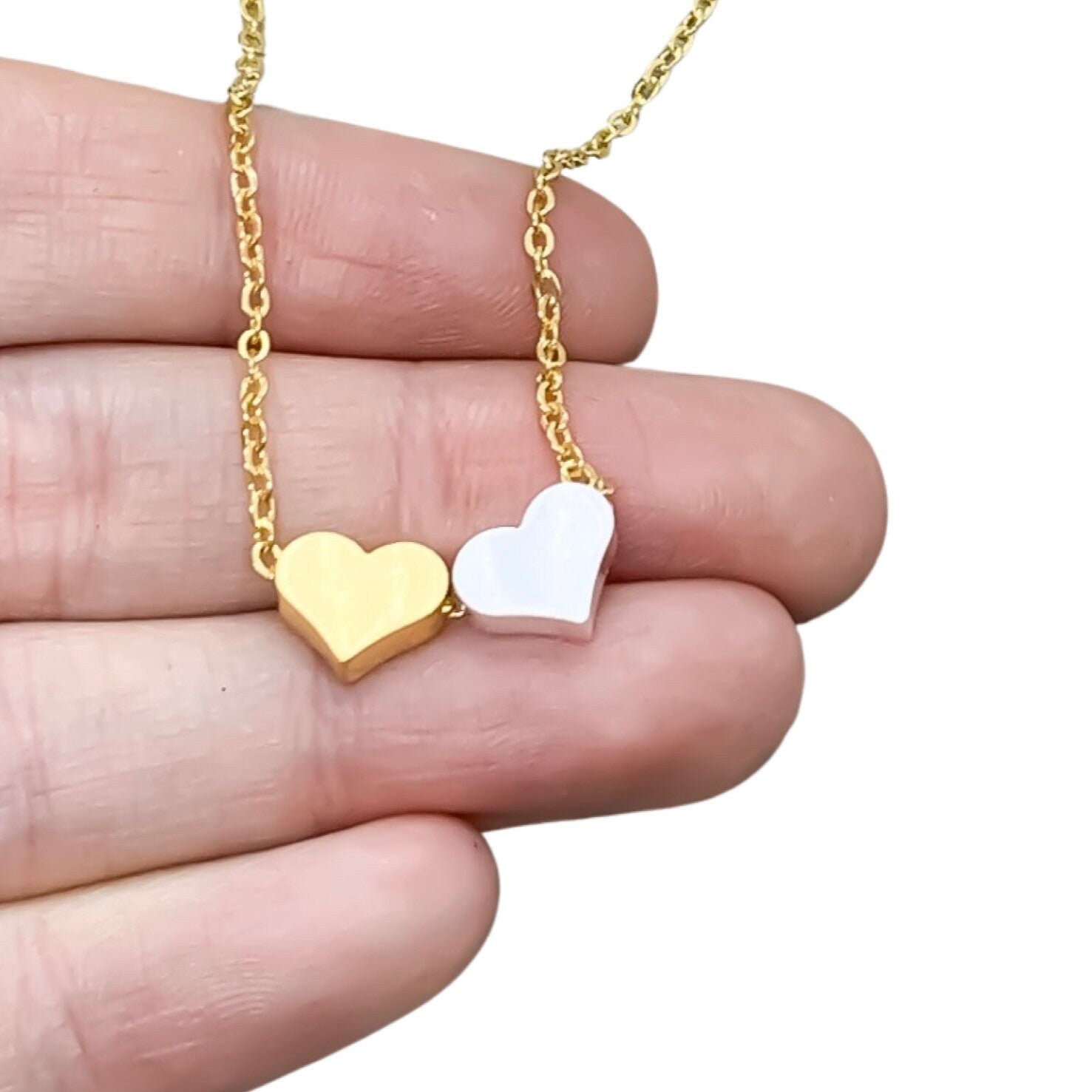 Collier double cœur, cadeau mère-fille, cadeau de maman à sa fille, collier 2 cœurs, cadeau pour un 21e anniversaire, cadeau de départ d'une fille