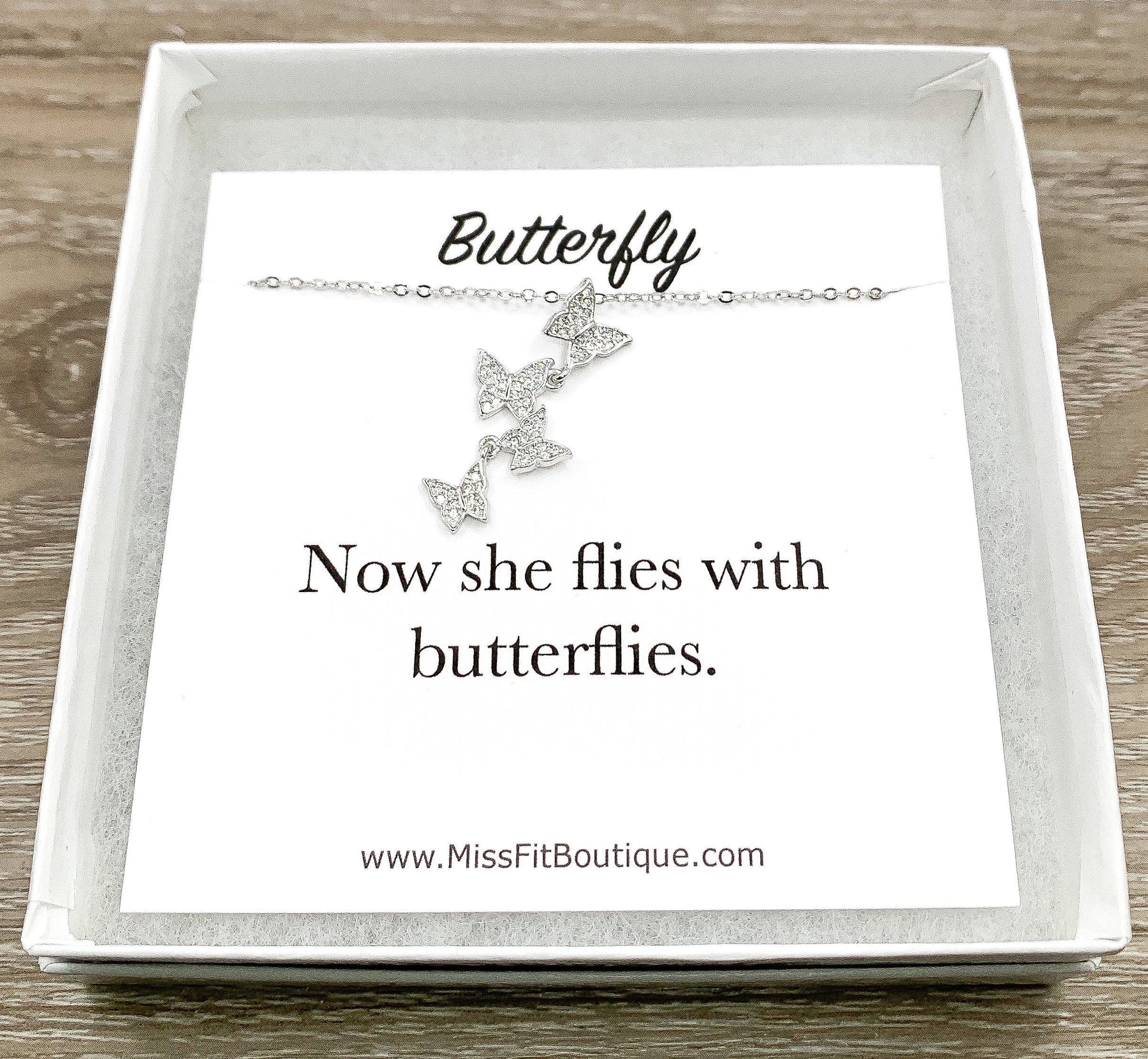 Collier Papillons Multiples, Citation « Elle vole avec les papillons », Collier Souvenir, Collier Petit Papillon, Cadeau Souvenir