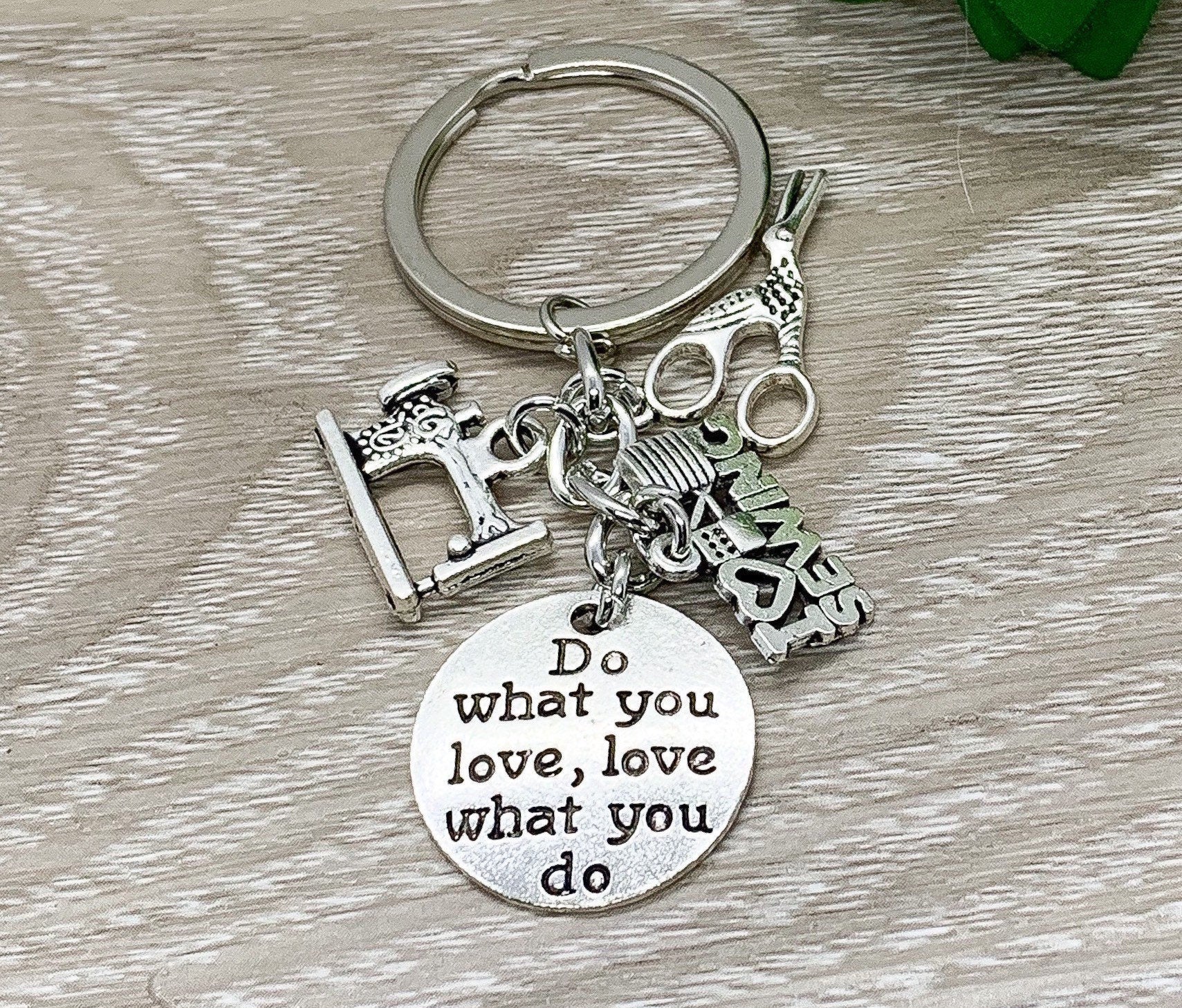 Porte-clés couture, cadeau couturière, breloque machine à coudre, porte-clés ciseaux, cadeau pour créatif·ve, j'adore coudre, cadeau loisir créatif, bricolage