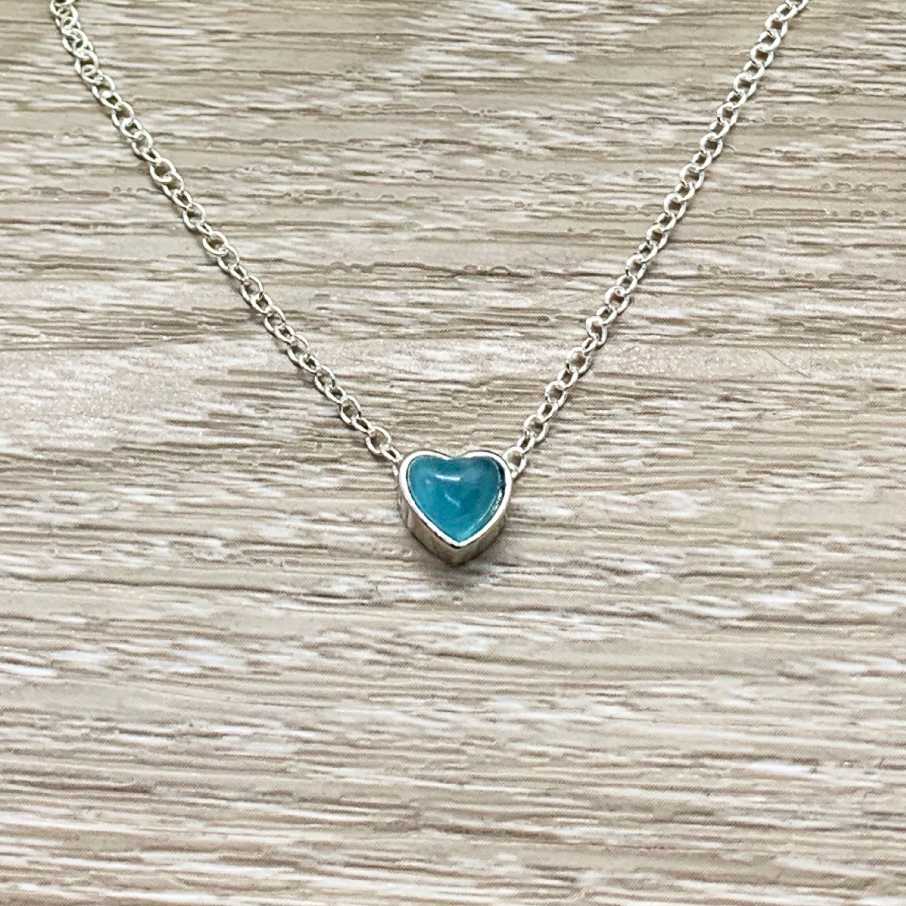 Collier avec petit cœur bleu, pendentif cœur en argent sterling, bijou minimaliste, cadeau pour grand-mère, cadeau pour maman, collier minimaliste