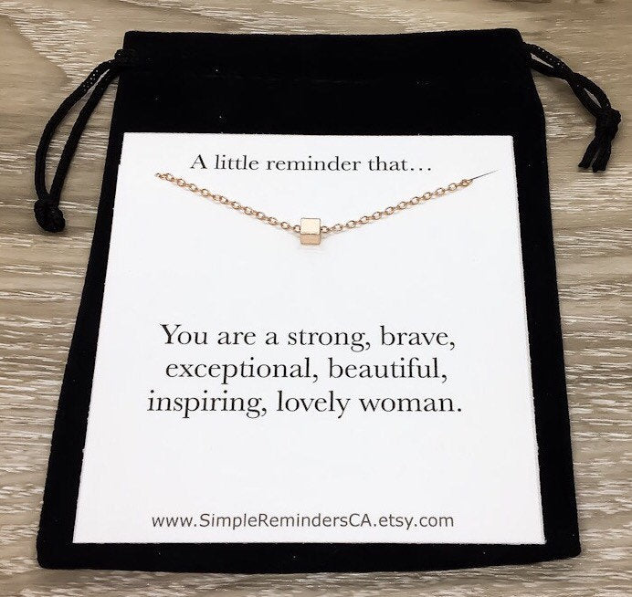 Collier Petit Cube, Bijou Force, Collier Message Simple avec Carte, Cadeau pour Fille, Cadeau d'encouragement, Cadeau pour Filles, Symbole de Sens