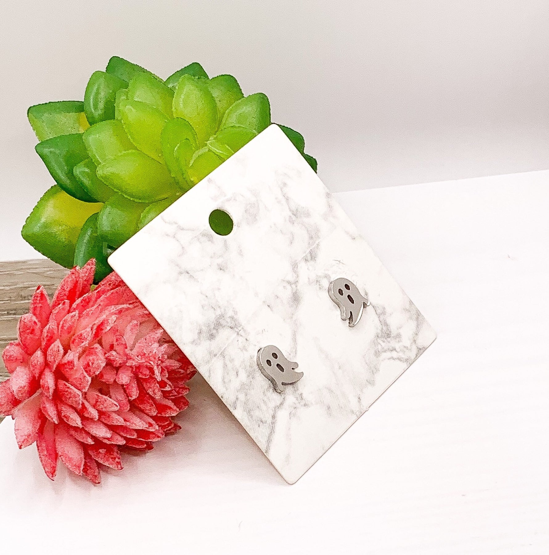 Boucles d'oreilles fantômes miniatures, boucles d'oreilles d'Halloween, bijoux effrayants, petites puces fantômes en or rose, cadeau pour une fête d'Halloween, boucles d'oreilles effrayantes pour elle