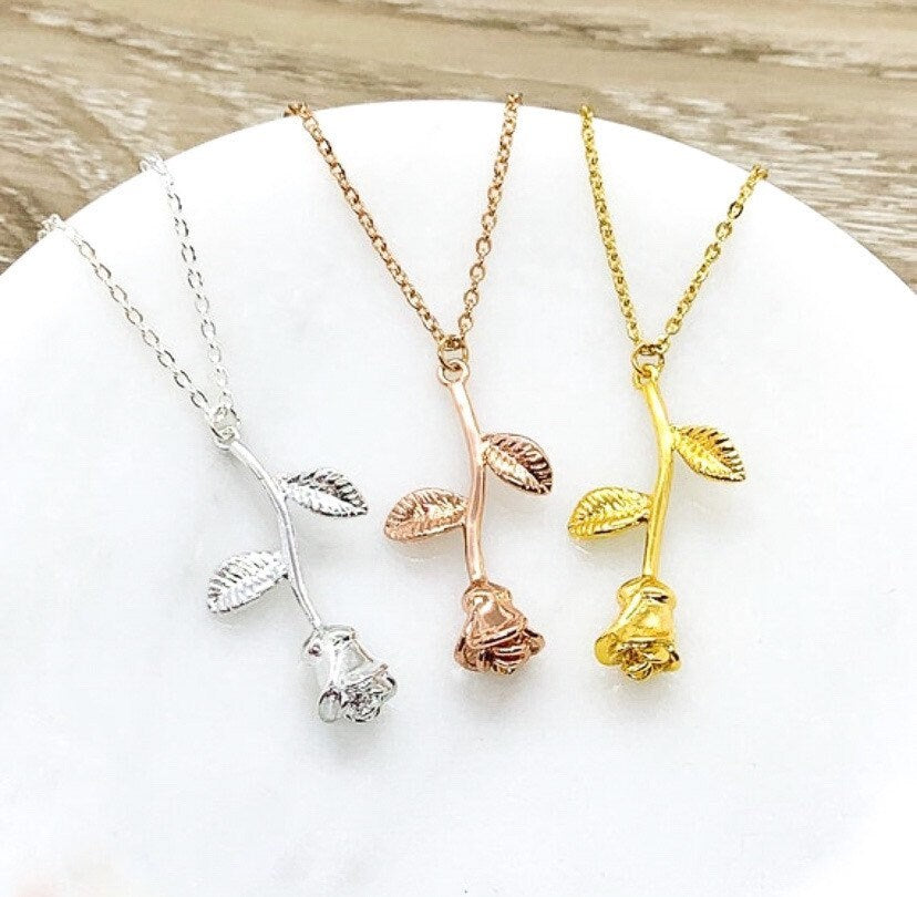 Collier rose miniature, collier de fleurs délicates, bijou romantique, pendentif floral, cadeau d'anniversaire, cadeau de votre petit ami, cadeau de Noël