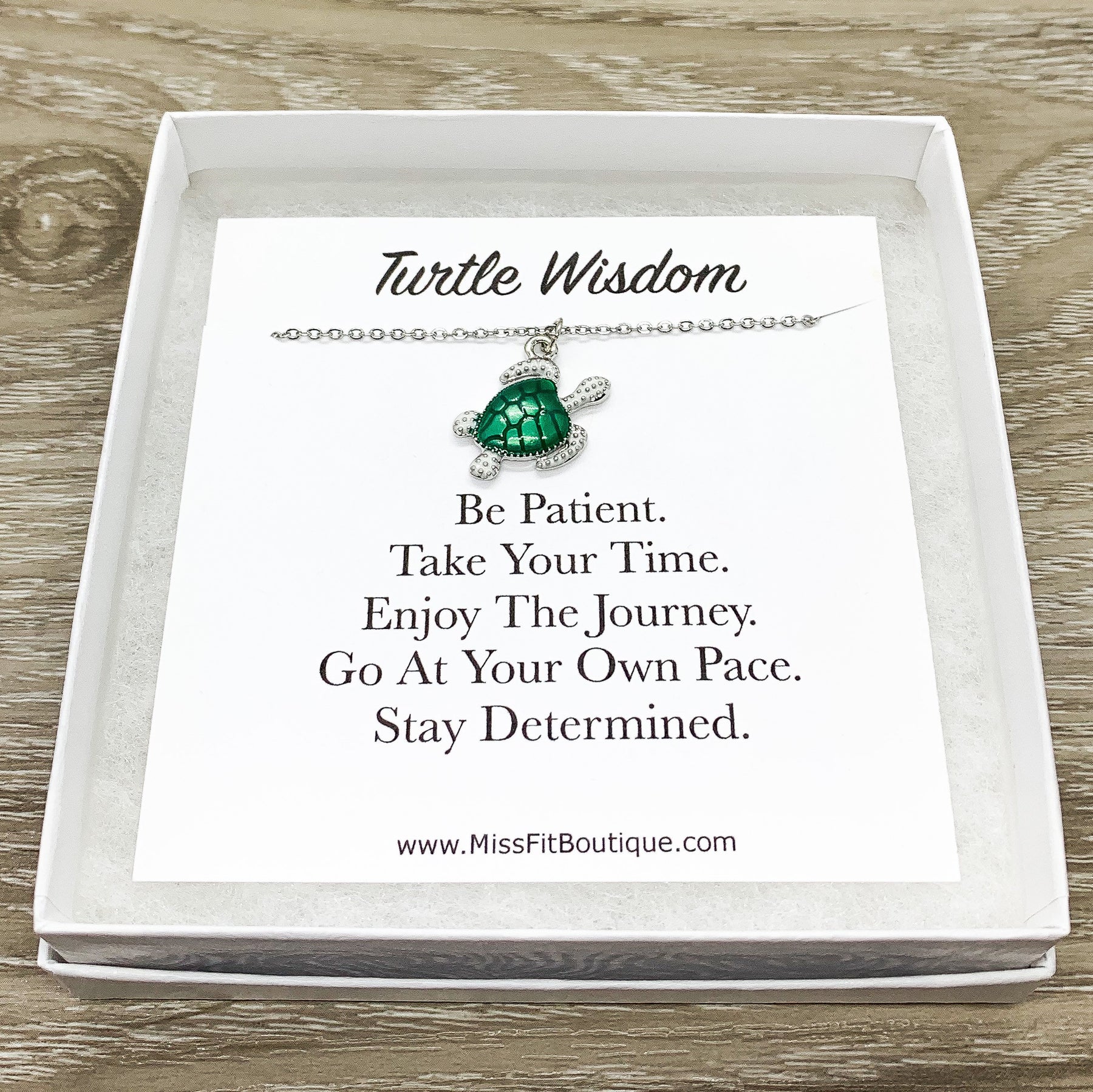 Turtle Wisdom Quote, Turtle Jewelry Gift, Green Turtle Charm Necklace, Beach Necklace, Minimalist Gift, Ocean Gift, Aquatic Animal Necklace