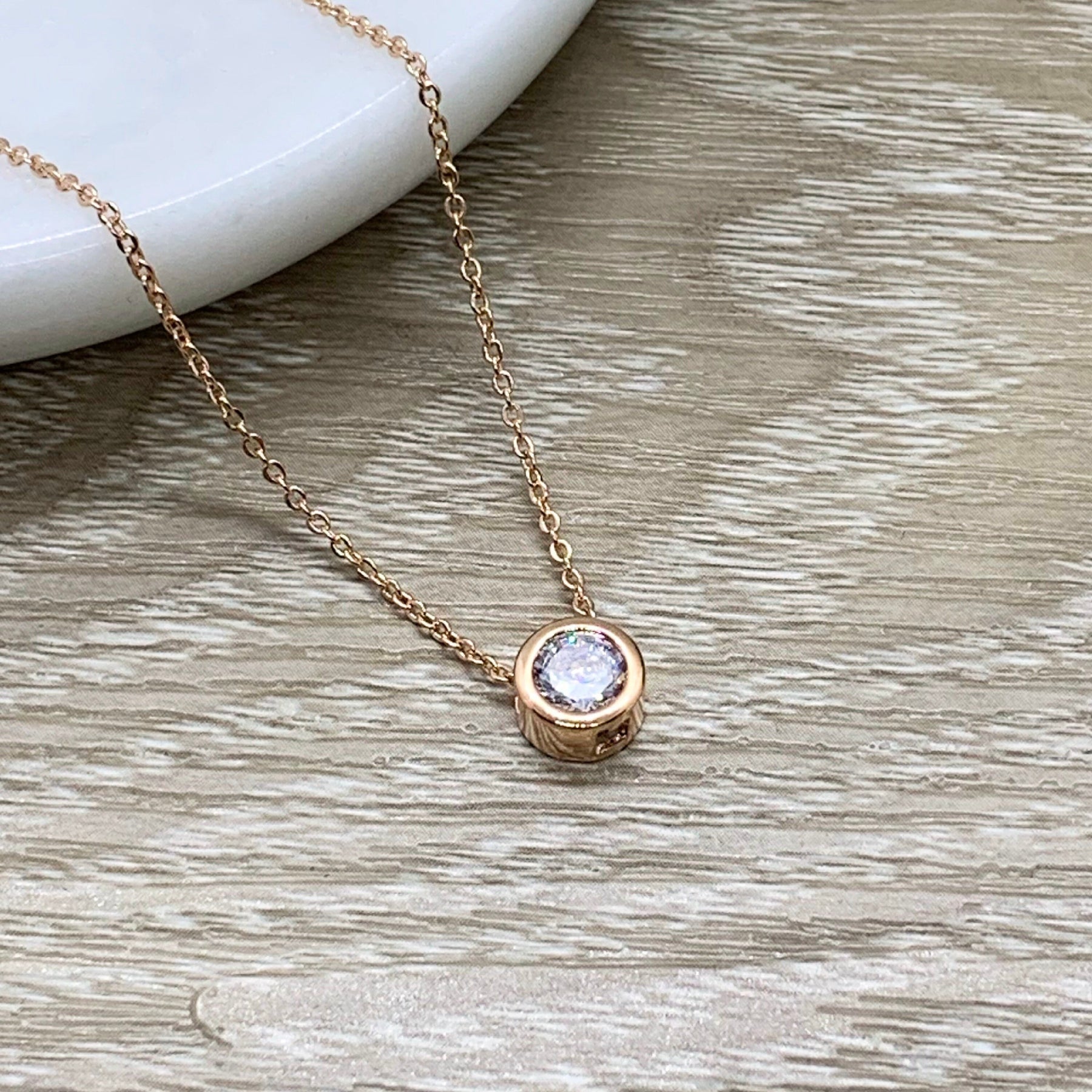 Bijou pour sœur de cœur, cadeau d'amitié, collier avec petit cristal rond, pendentif solitaire en or rose, cadeau pour une sœur de cœur, cadeau pour une amie