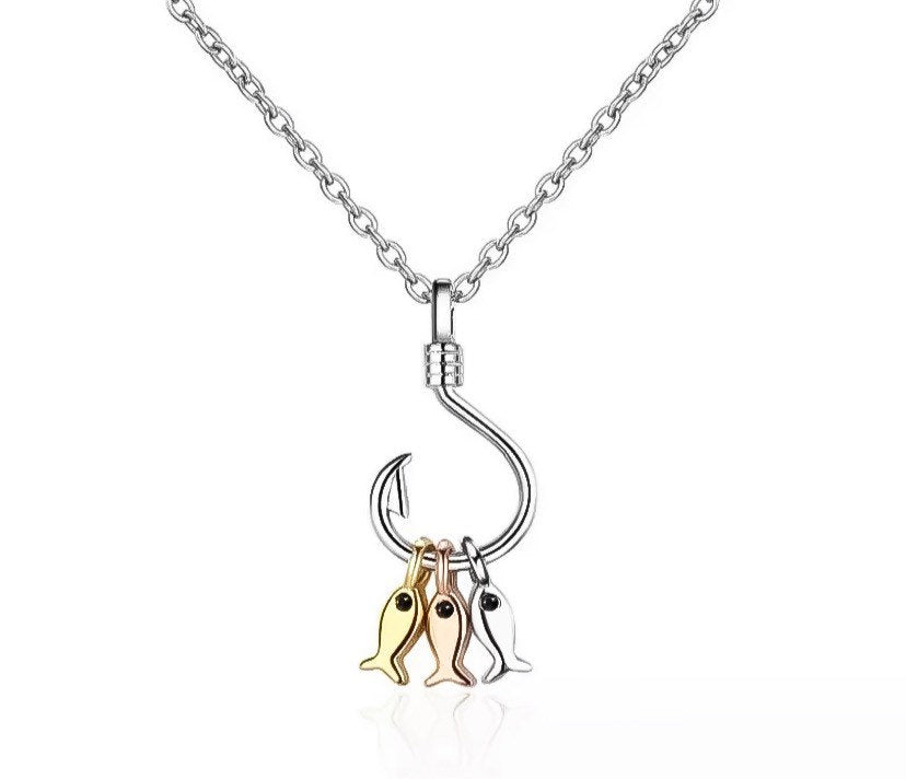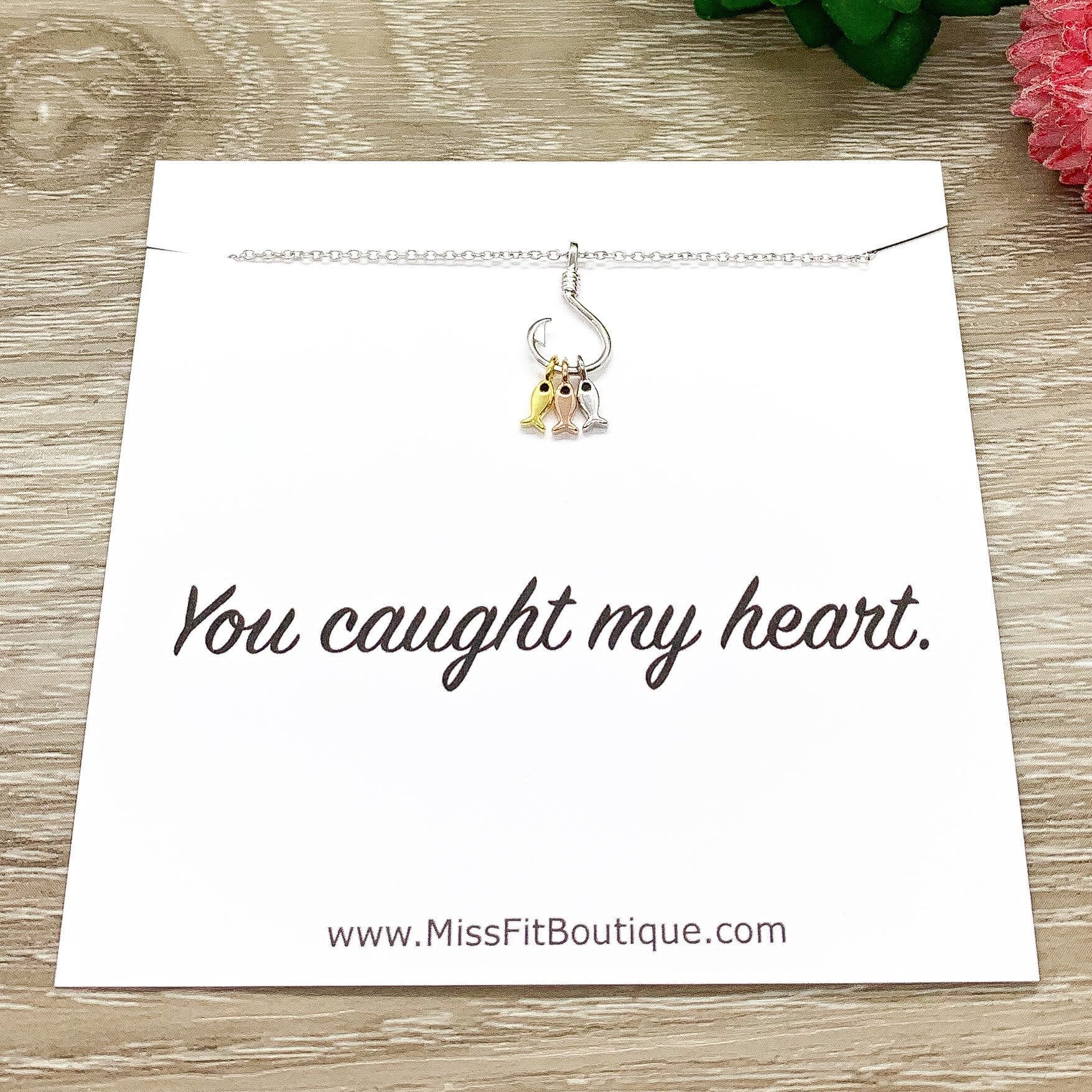 You Caught My Heart Gift, Fish Hook Necklace, Sterling Silver Pendant, Dainty Jewelry, Girlfriend Gift, Gift for BestFriend, Holiday Jewelry