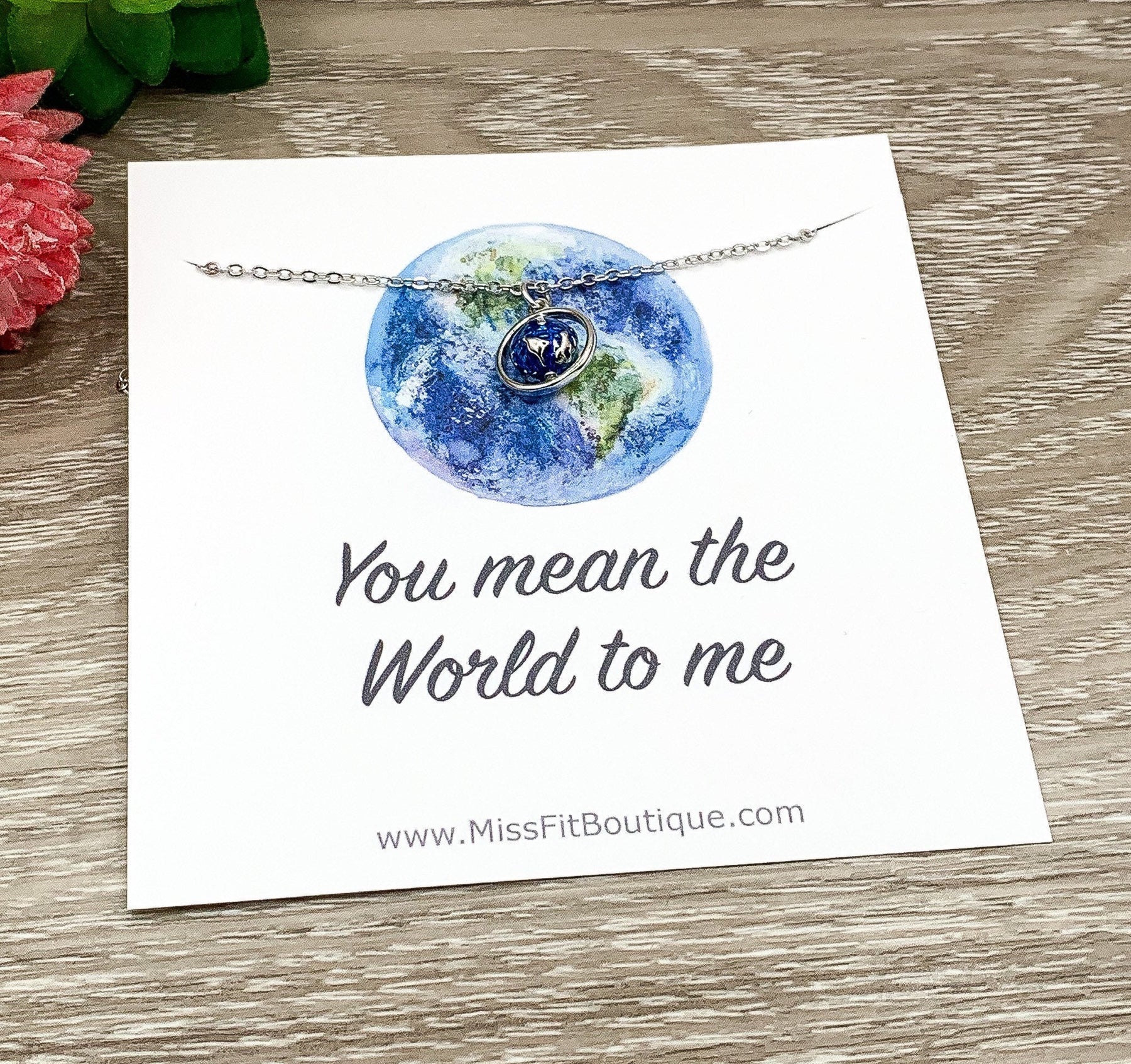 You Mean The World To Me, Tiny Planet Earth Necklace, Friendship Necklace, Gift for Best Friend, Going Away Gift for Sister, Women Necklace