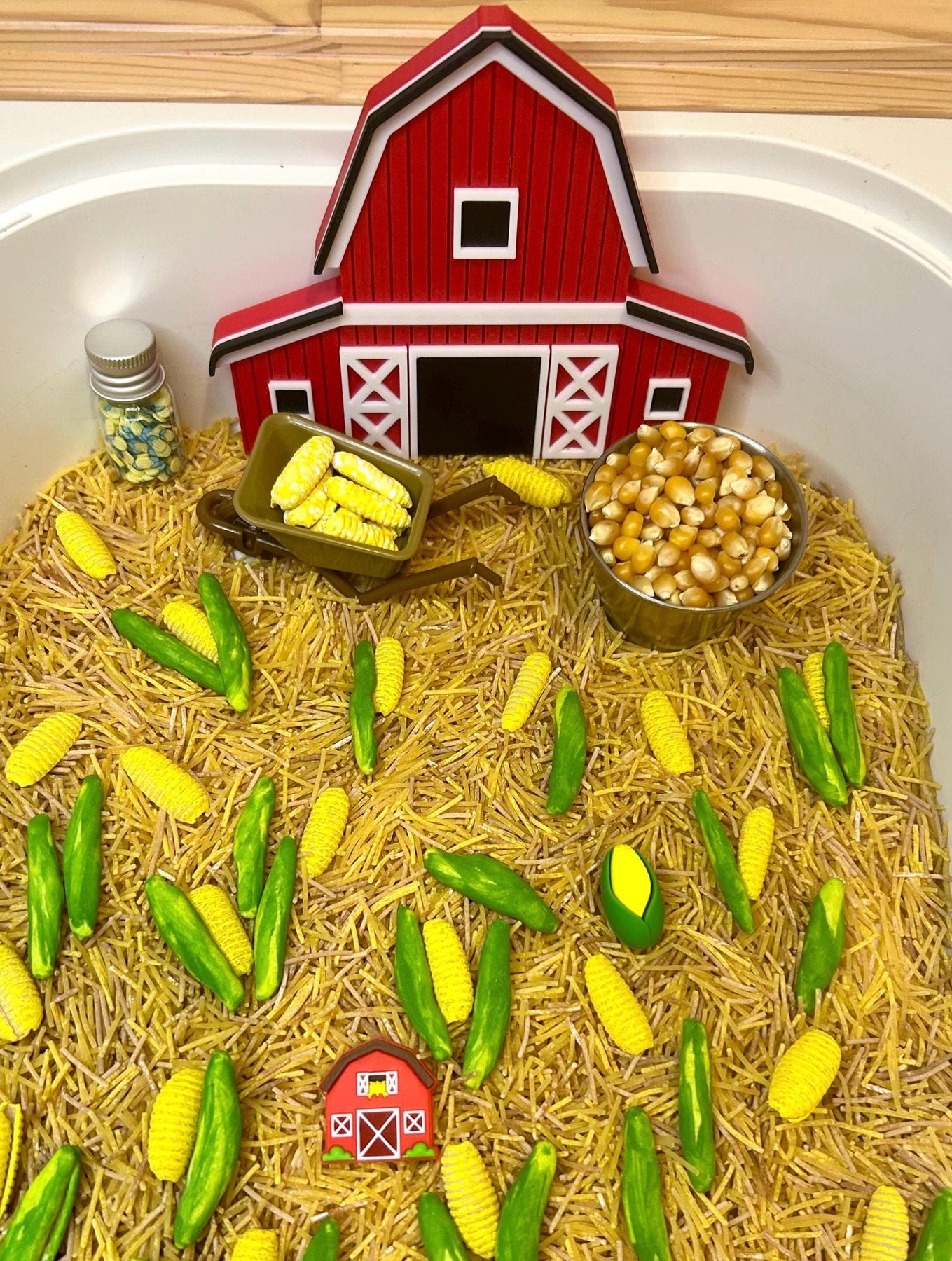 • Corn Kernels: Real dried corn for a fun sensory texture.