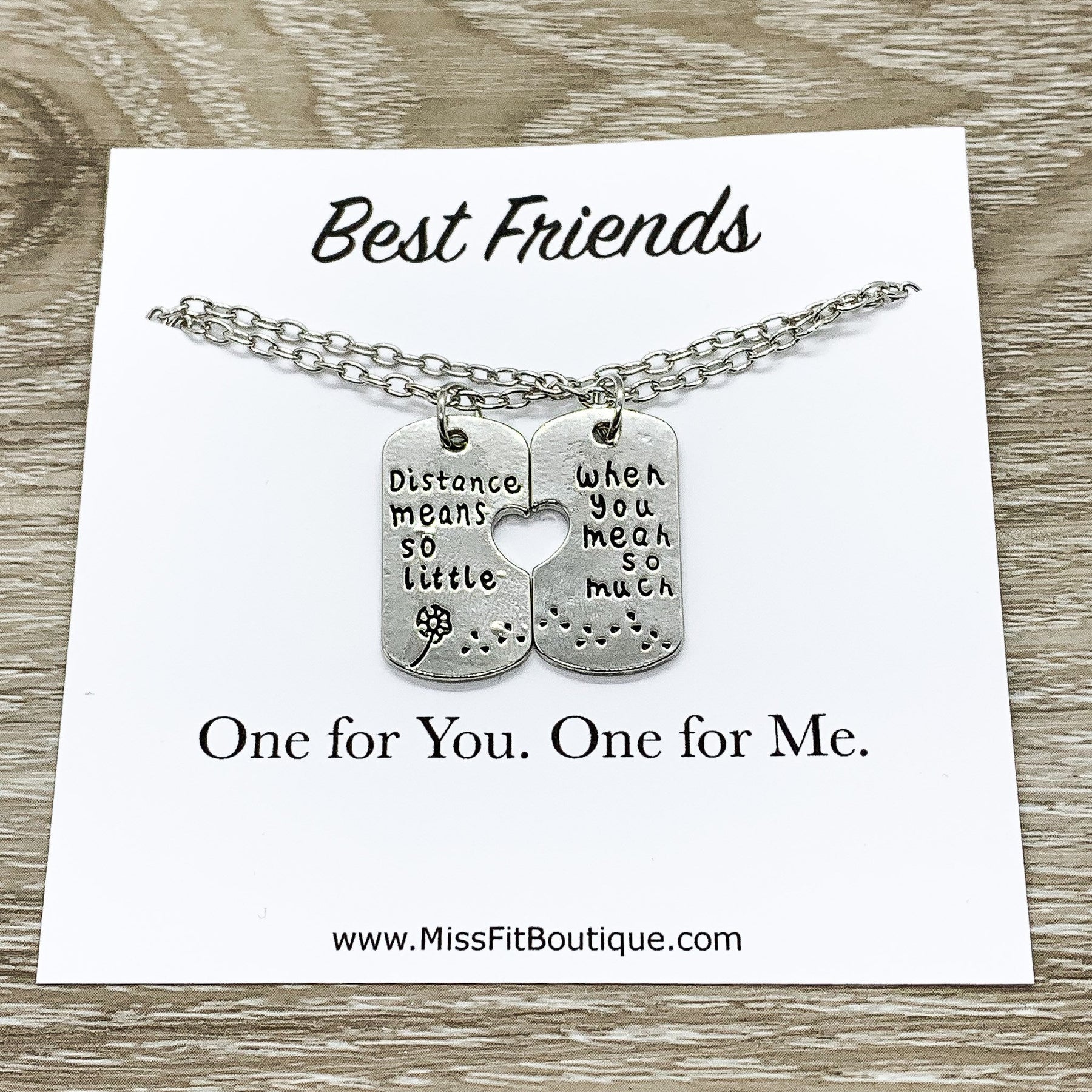 Friendship Matching Necklace Set for 2, Distance Means So Little Quote, Friendship Gifts, Gift for Best Friend, Bestie Gift, Going Away Gift