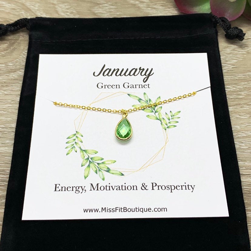 January Birthstone Necklace, Green Garnet Pendant, Dainty Crystal Charm Necklace, Personalized Birthday Gift for Her, Meaningful Jewelry