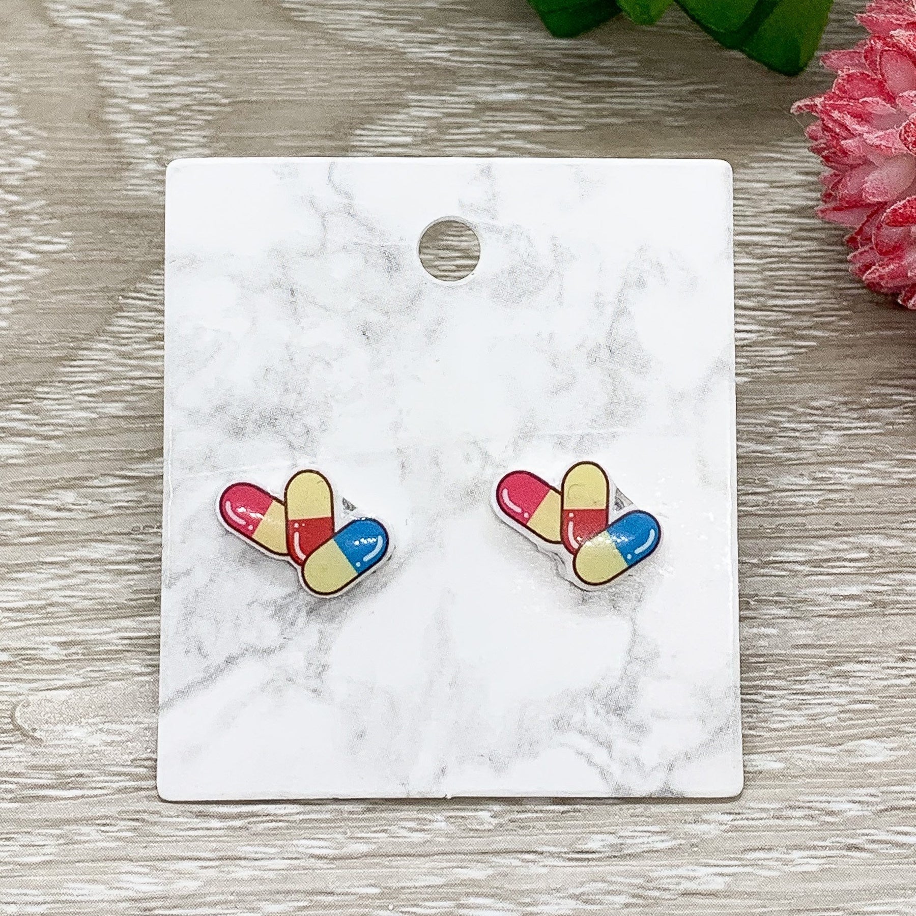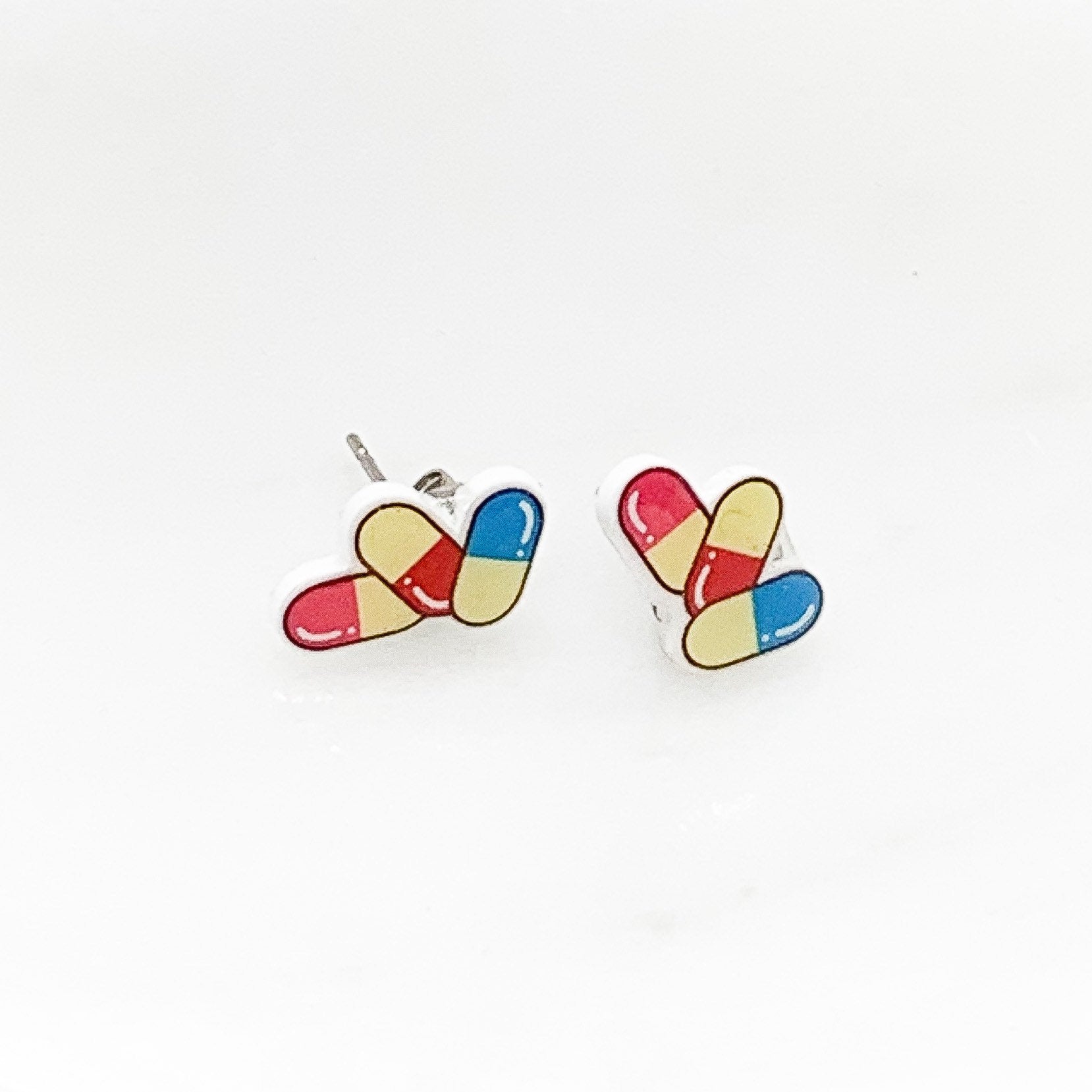 Kawaii Pill Earrings, Shrink Plastic Stud Earrings, Pharmacist Jewelry, Cute RX Prescription Earrings, Unique Jewelry, Health Care Worker