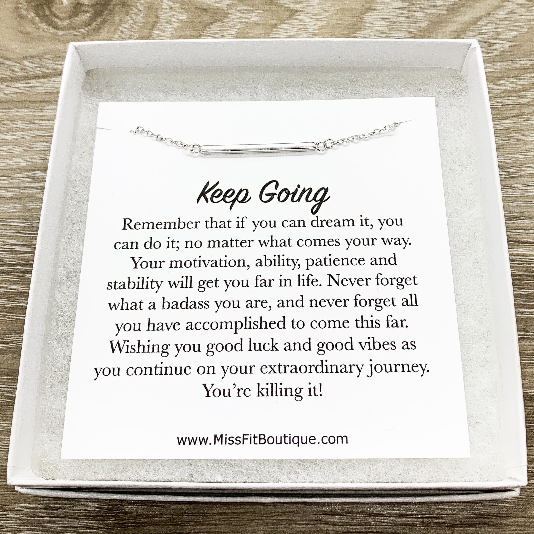 Keep Going Card, Balance Bar Necklace, Sterling Silver Jewelry, Layering Necklace, Gift for Student, Gift for Sister, Motivational Gift