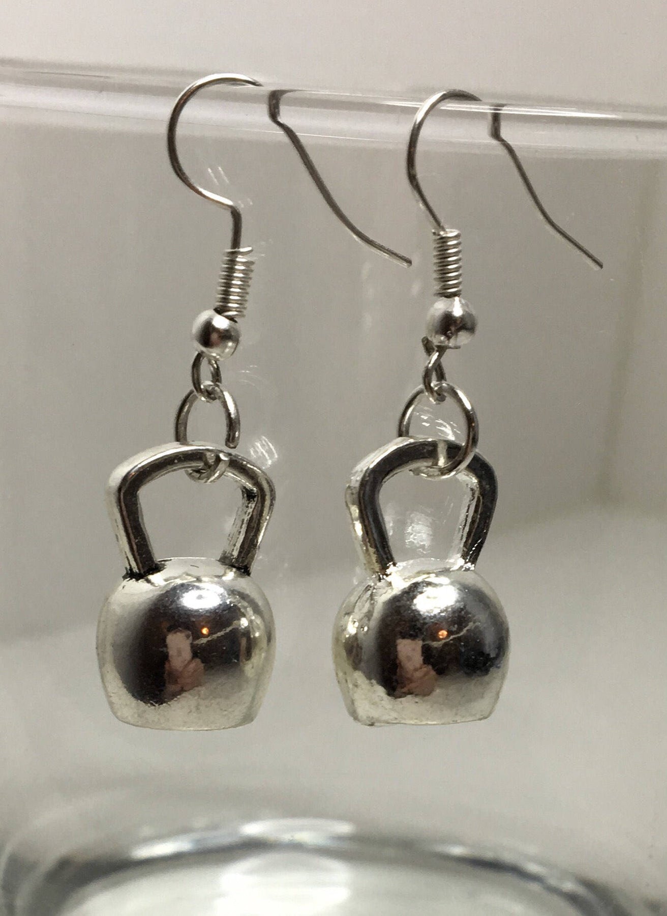 Kettlebell Dangle Earrings, Fitness Jewelry, Kettlebell Jewelry Silver, Workout Earrings, Weightlifting Earrings, Gifts for Fitness Lovers
