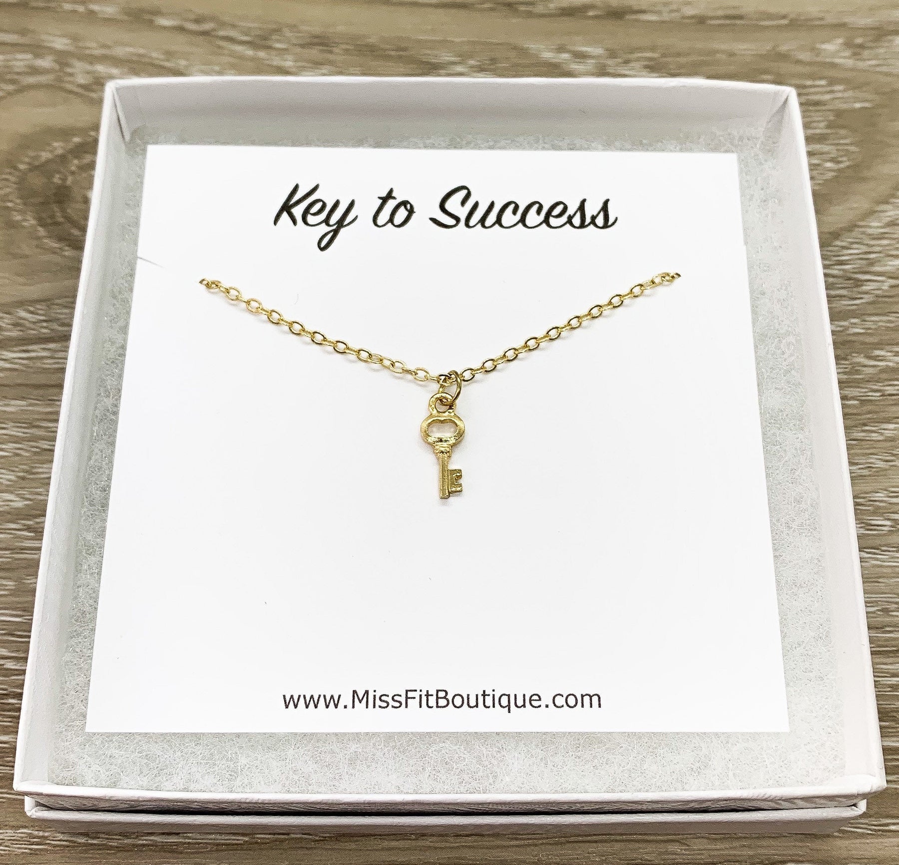 Key to Success Card, Tiny Silver Key Necklace, Gift for Student, Friendship Necklace, Key Shaped Pendant, Skeleton Key Charm, Student Gift