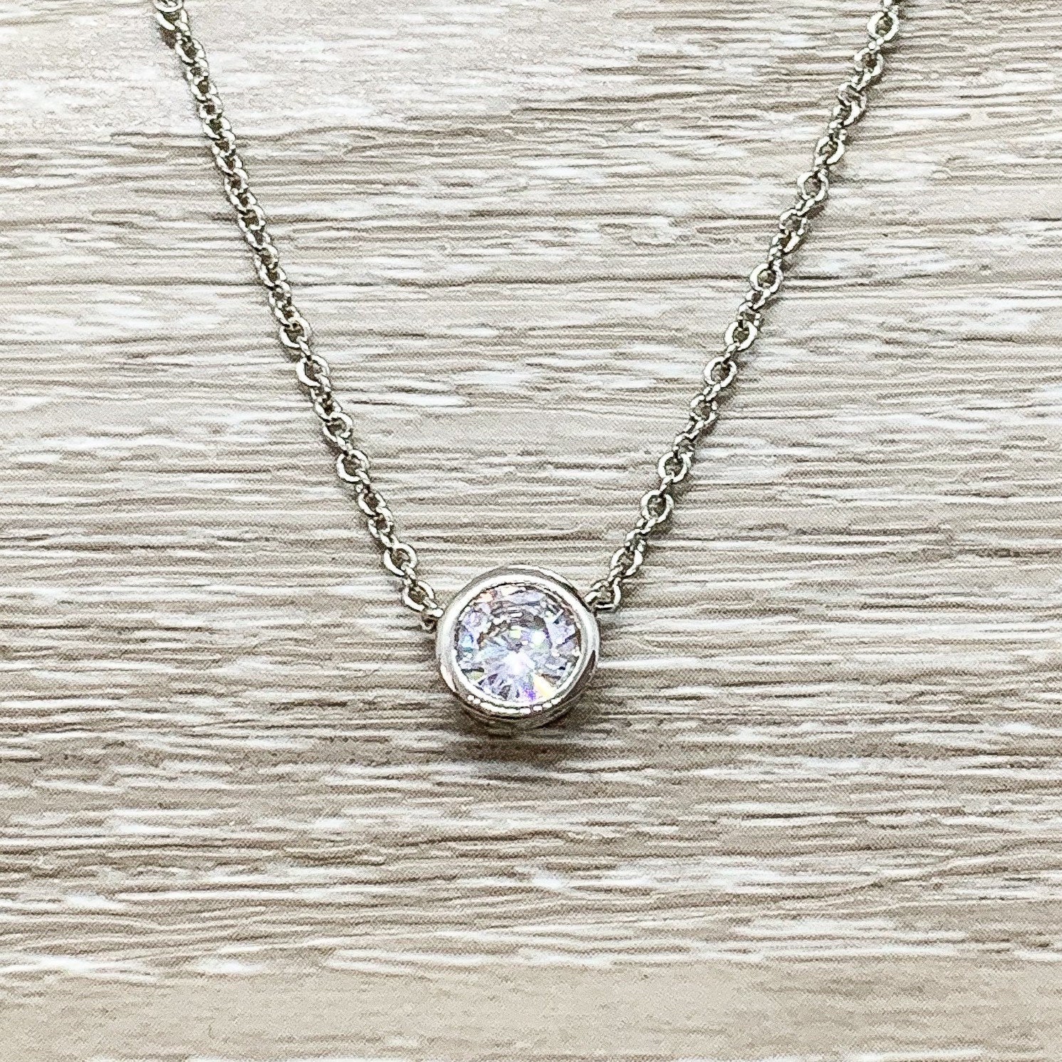 New Baby Gift, Congratulations Card, Tiny Round Crystal Necklace, Silver Solitaire Rhinestone Pendant, New Mama Gift, Pregnancy Gift