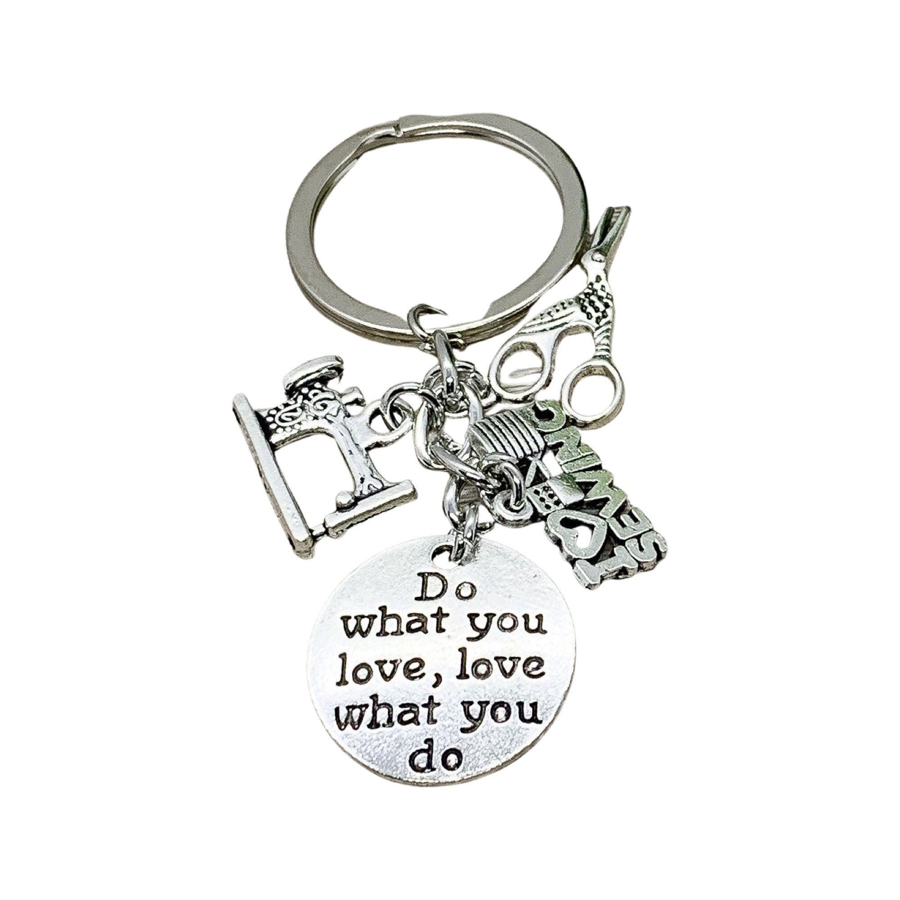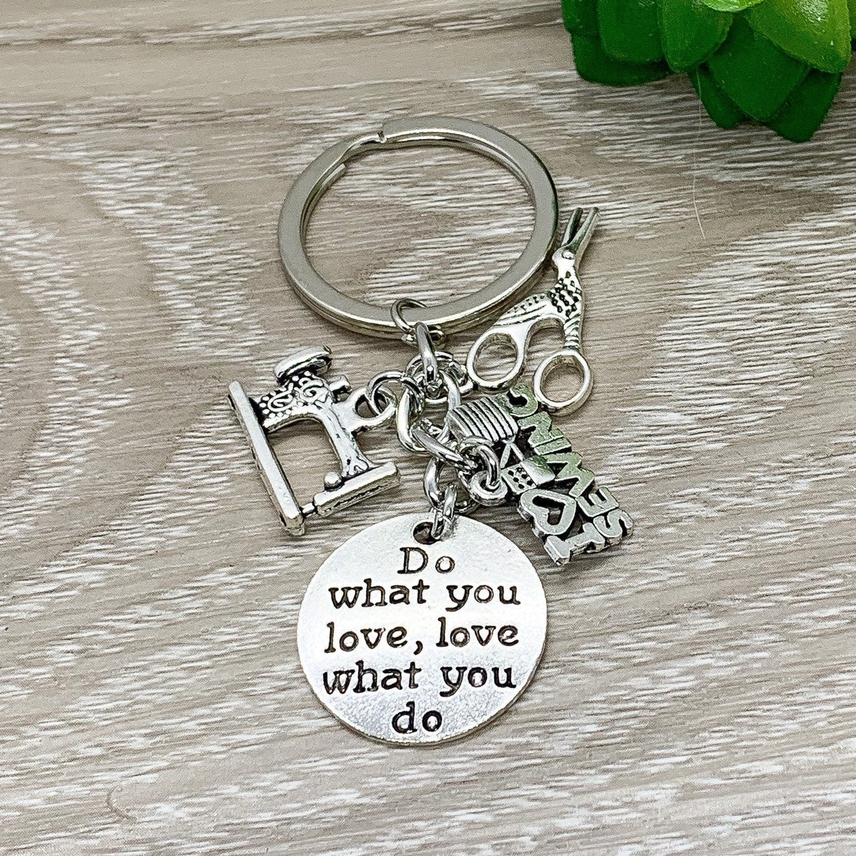 Sewing Keychain, Seamstress Gift, Sewing Machine Charm, Scissors Keyring, Crafty Person Gift, I Love Sewing, Hobby Gift, DIY