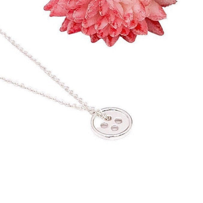 Simple Button Necklace, Sewing Necklace, Sterling Silver Jewelry, Gift for Granddaughter, Seamstress Necklace, Grandmother Necklace