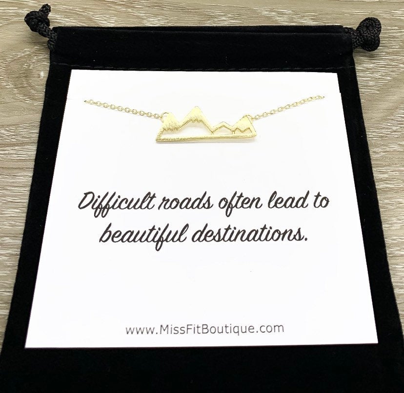 Snowy Mountain Necklace, Gold Mountain Range Jewelry, Travel Necklace, Travel Gifts for Her, Inspirational, Hiking Minimalist Gifts, Explore, Gifts for Her