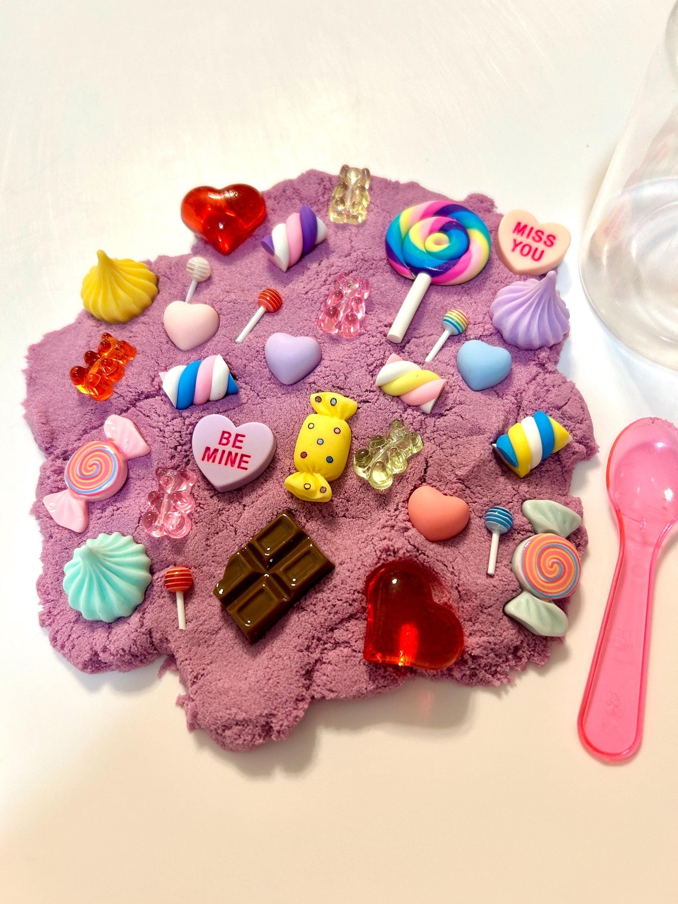 Valentine Kinetic Sand Kit with Charms | Candy & Heart Theme | Sensory Play | Red, Pink or Mauve | Montessori Play | 120g Sand